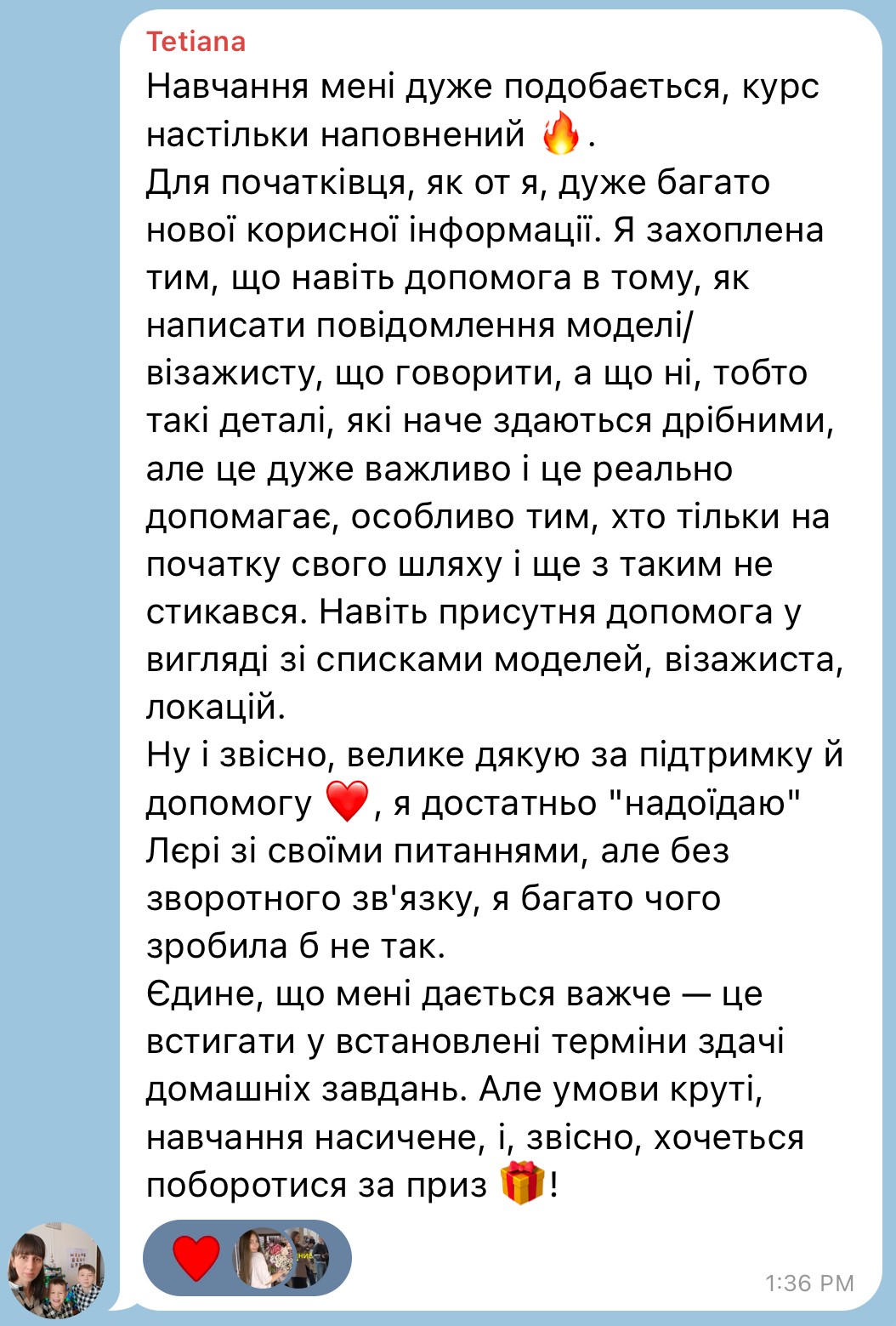 Хочу сказать спасибо за этот курс, ни капельки не жалею ни времени ни денег на него. Советую каждому не боятся и идти к работе которая будет нравится 🥰"